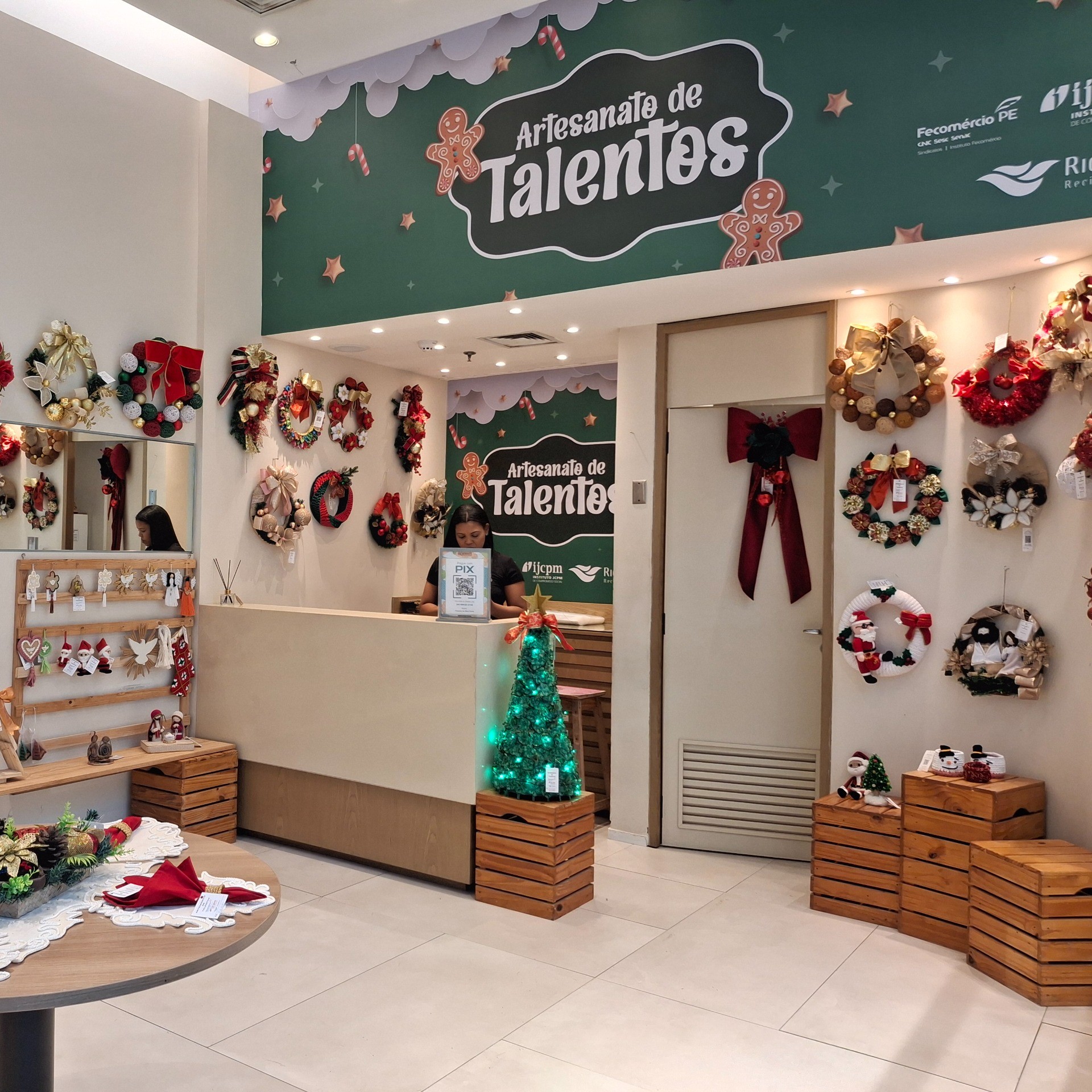 A Artesanato de Talentos é uma parceria do shopping com Instituto João Carlos Paes Mendonça de Compromisso Social (IJCPM) e o Instituto Fecomercio-PE e oferece opções de decoração natalina e mesa posta, entre outros itens característicos para as festas de fim de ano produzidos por 20 artesãs e artesãos das comunidades do Pina e de Brasília Teimosa.