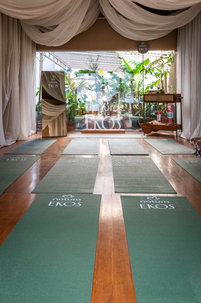 Segundo Denise Coutinho, diretora de marketing e comunicação Brasil da Natura, o espaço foi criado para o público vivenciar um momento de pausa e inspirado na potência anti-cansaço e regeneradora da Andiroba.